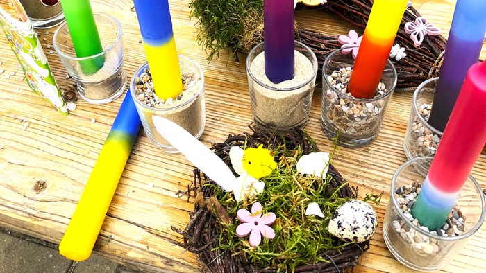 Laetarestecken und Palmzweige - auch zum Verschenken – schöne Osterdeko und natürlich passende Kerzen gießen und ziehen in der Kerzenwerkstatt. Und das alles in gemütlicher Atmosphäre bei Kaffee und Kuchen!