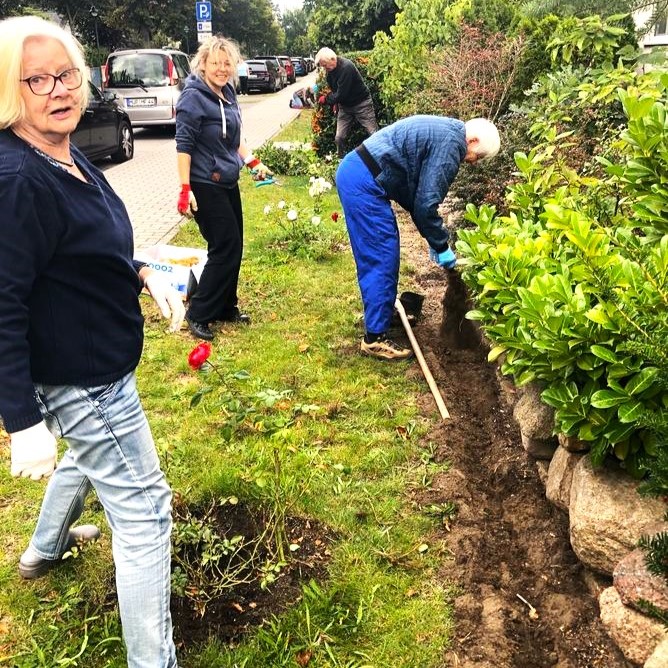 Bis September erfreuen sich alle an Sträuchern und Hecken. Aber dann geht es los – mit Scheren, Spaten, Säge, Harken usw. Vieles musste winterfest gemacht werden und einiges für den Frühling vorbereitet werden – wie z.B. Frühlingsblüher in die Erde!